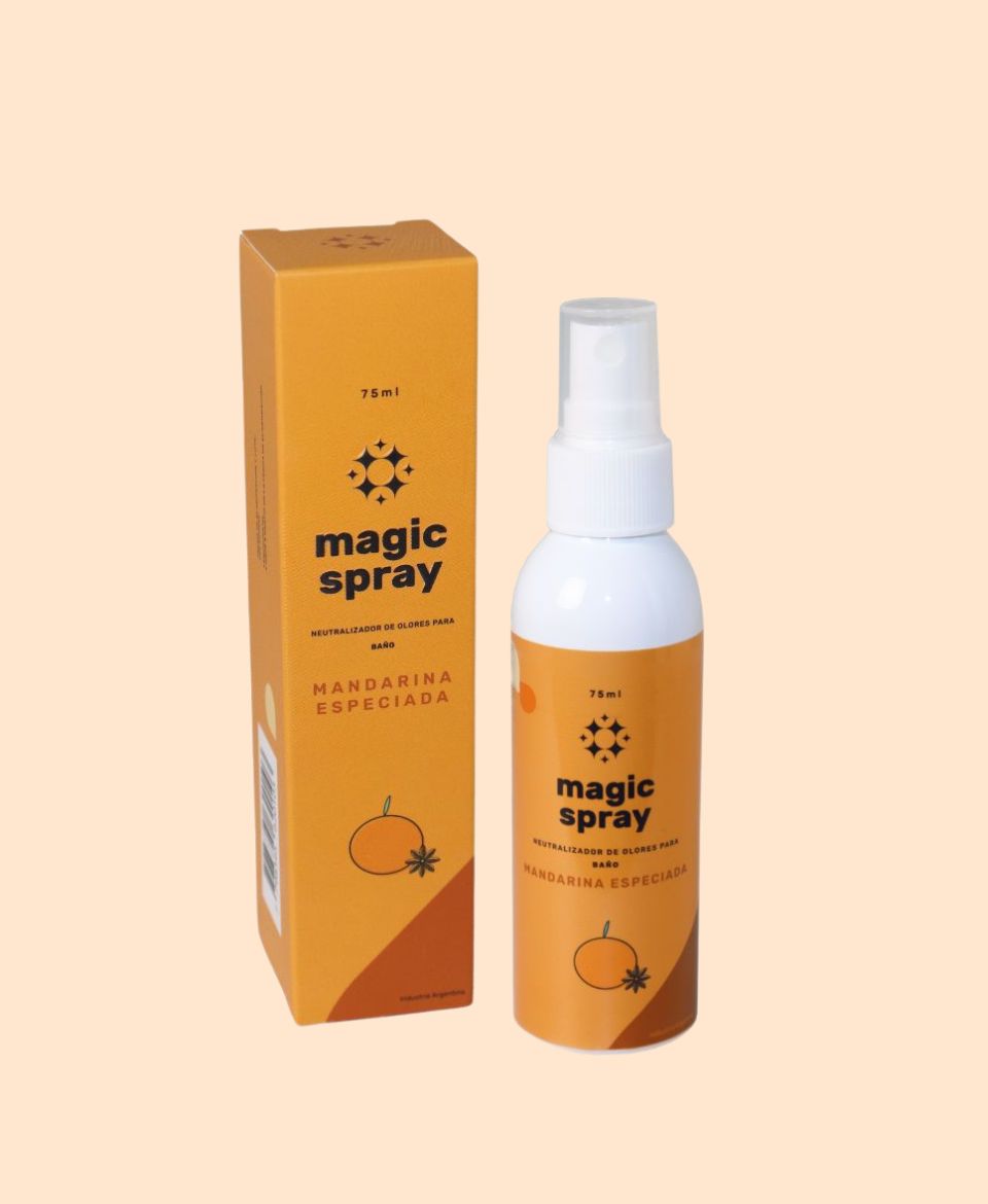 Magic Spray es un neutralizador de olores para inodoro que actúa creando una barrera sobre la superficie del agua en el inodoro antes de su uso.