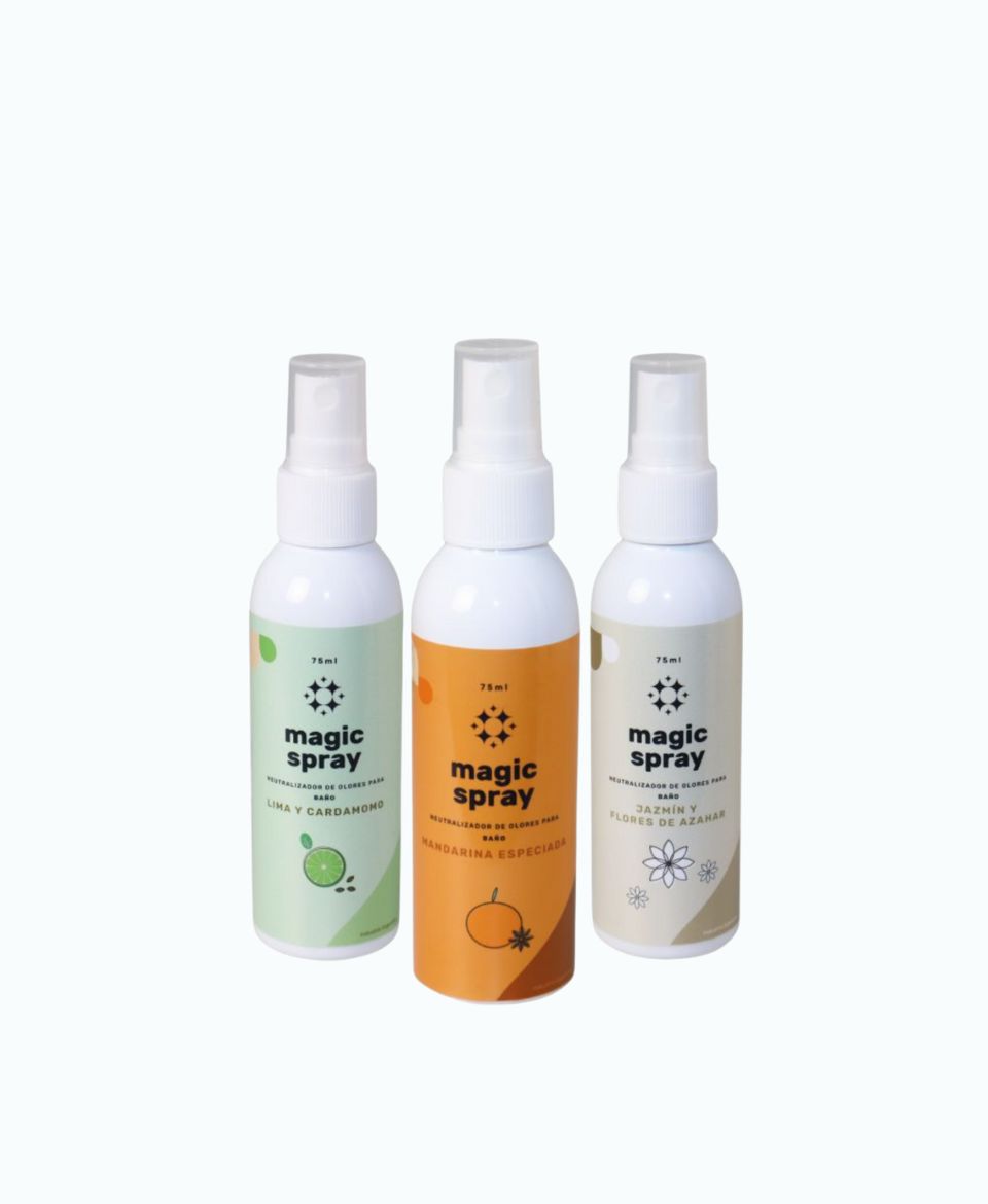 Magic Spray es un neutralizador de olores para inodoro que actúa creando una barrera sobre la superficie del agua en el inodoro antes de su uso.